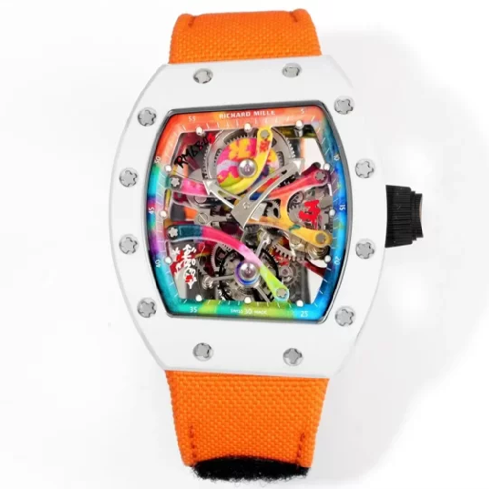 • RM공장 리차드밀 RM68-01 시릴 콩고 투르비용 에디션 화이트 세라믹 오렌지 스트랩