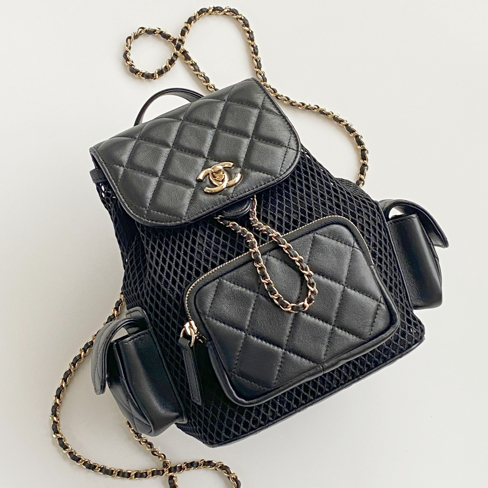 • 샤넬 25SS 메시, 샤이니 램스킨 & 골드톤 메탈 백팩